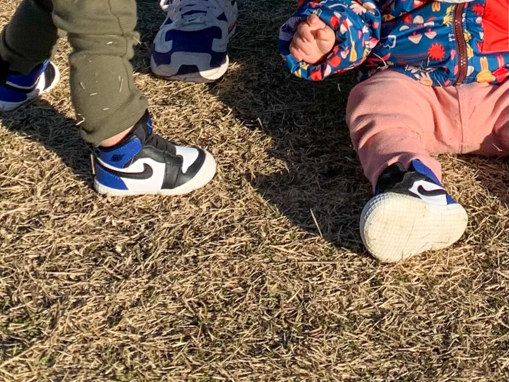 我が家の場合、出産祝いで一般的な「平均サイズのファーストシューズ」をいただきました。決して小さかったわけではありません。しかし、双子の「歩き始め」が1歳2ヶ月ほどでした。でも友達の子は10ヶ月で歩き出していたんですね!