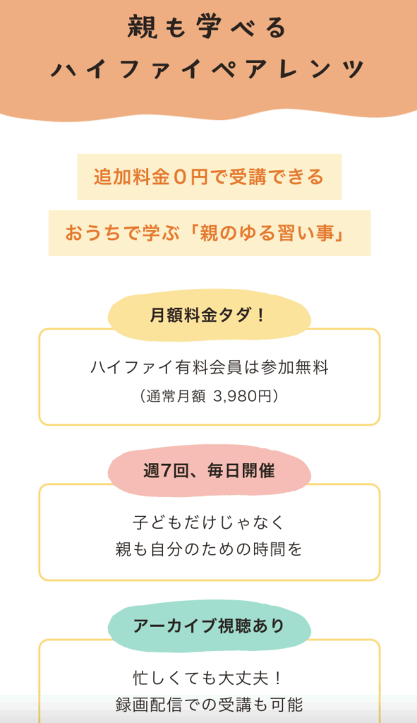 現在は「ハイファイペアレンツ」という、親も学べるクラスがあるそうです。